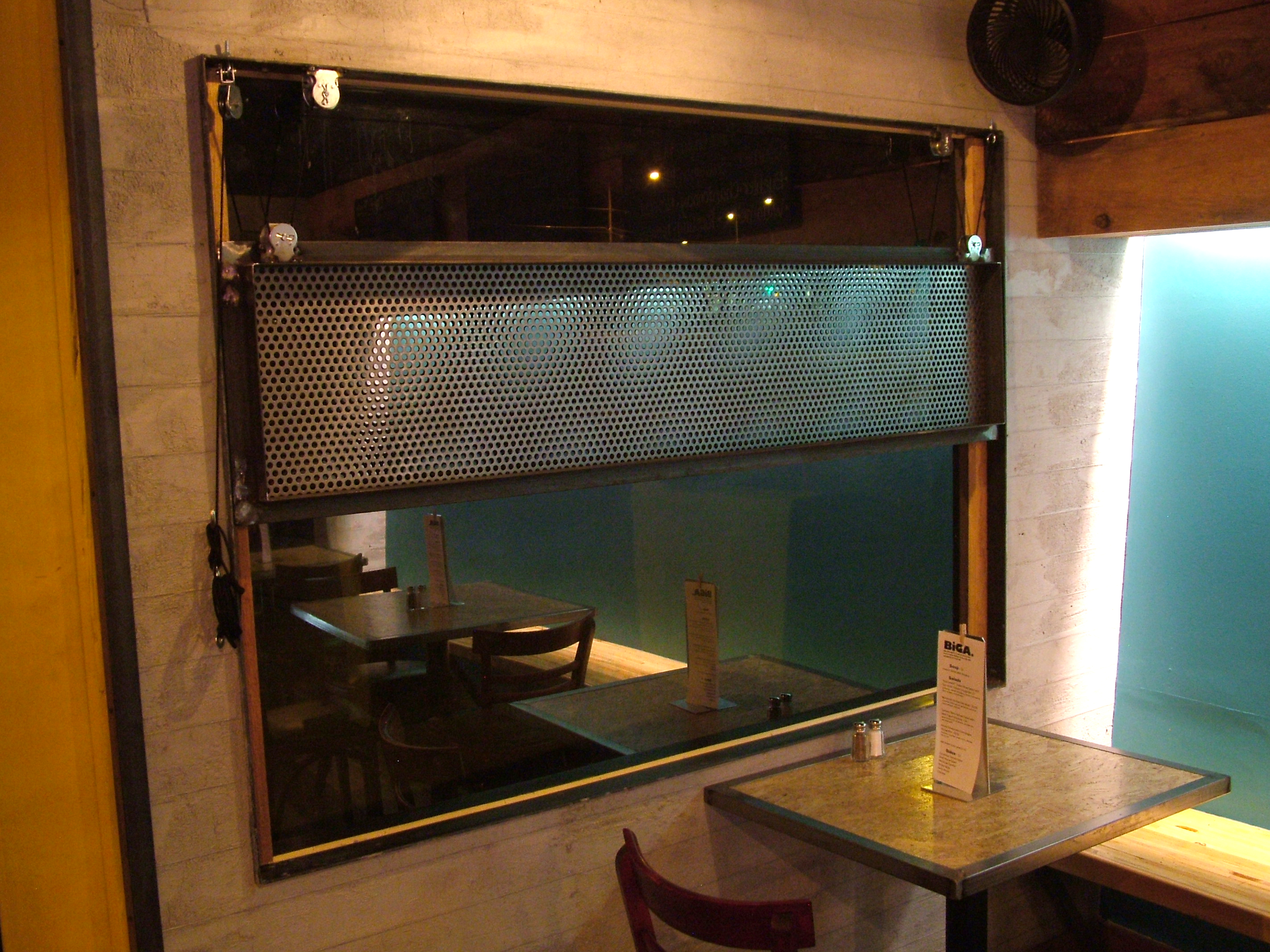DSCF1237mod May 16, 2017 2848 × 2136 Biga These mechanical steel sun shades were designed to be raised or lowered to break the powerful sun which pours through these windows in the evenings during certain times of the year.